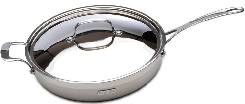 With high sides and stainless cover, this will also allow oven use to 500 degrees F. The small pot-holder handle 180 dsegree from the main handle allows for ease of both stove-top or oven use. A quality all stainless item for a busy kitchen. Tri-ply on bottom but not sides posed no problem for me. I like the high sides better than a traditional skillet shape.