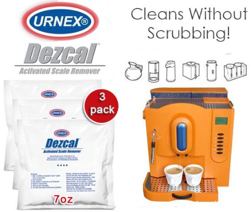 Description : DezcalTM Activated Scale Remover is specifically formulated to effectively descale hot water tanks and components of coffee and espresso machinery. By removing mineral deposits which clog and impair brewing equipment, DezcalTM allows machines to perform at optimal levels. Non-toxic and bio-degradable, DezcalTM is suitable for use by both professional technicians and home users alike. When used on commercial and "closed system" brewers (with a holding tank), special attention should be paid to rinsing.